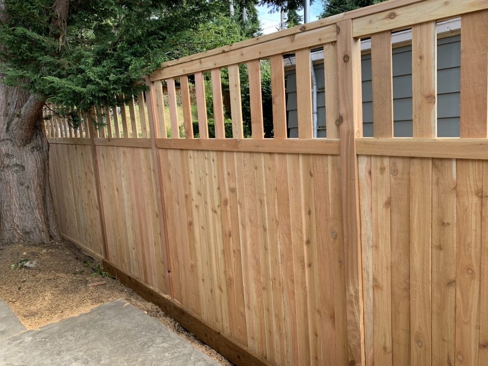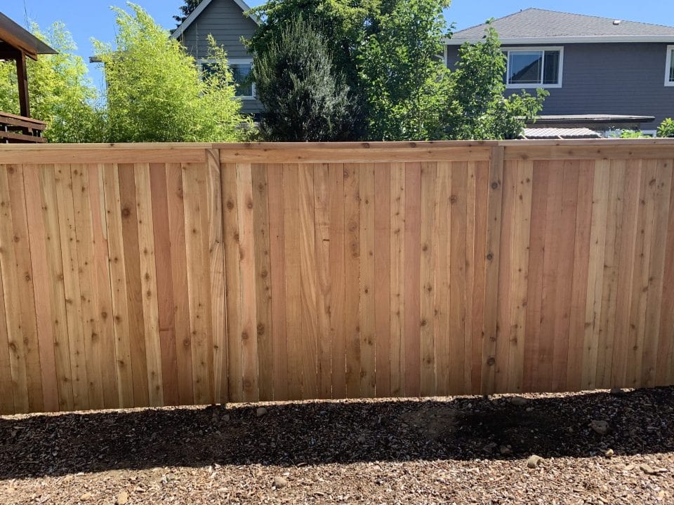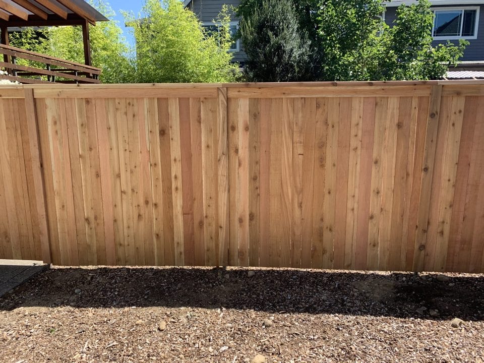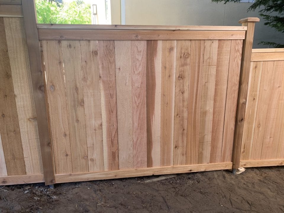 This fence is just your basic clean looking fence. We use tight knot cedar boards with cedar pipe on post and cedar 2×4 for the cross section. This fence is the most budget friendly fence.