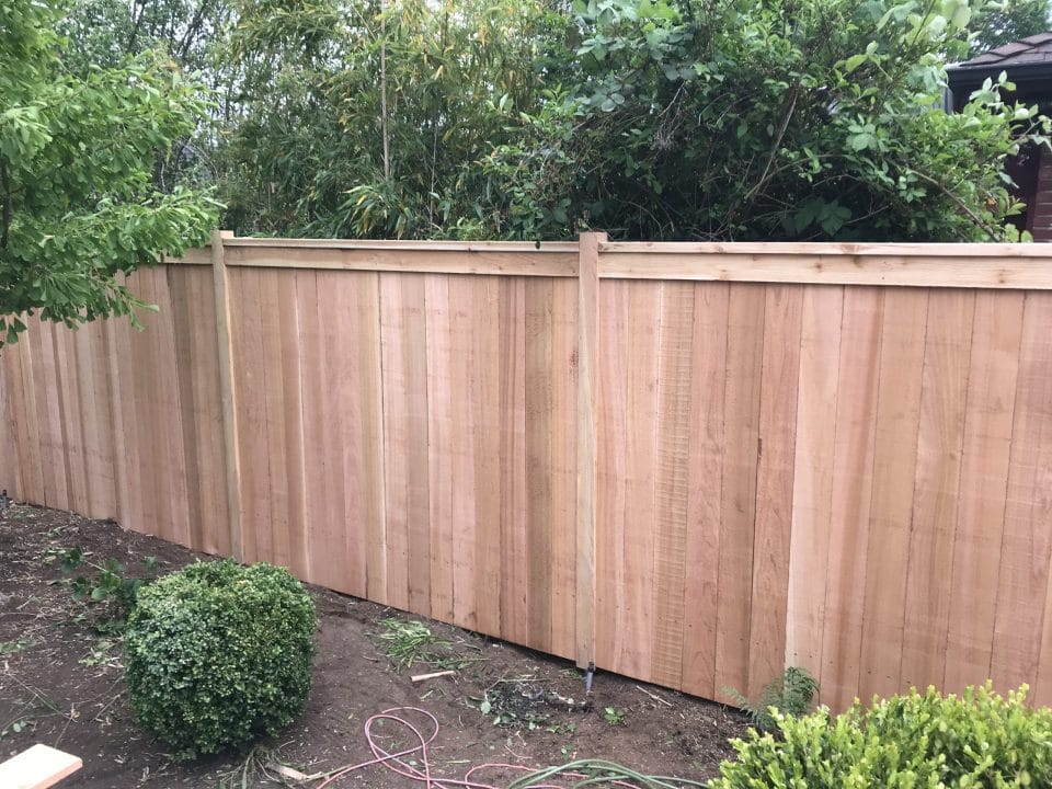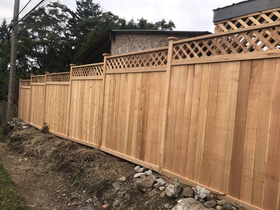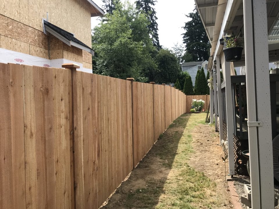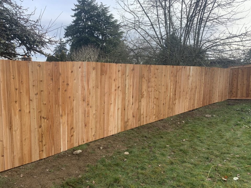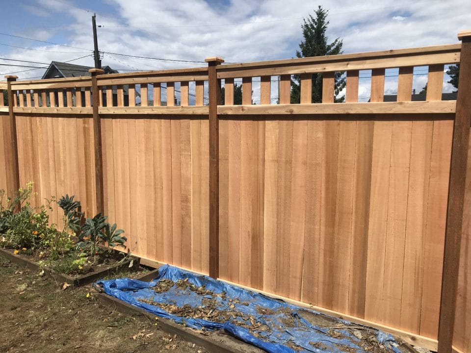 This fence is just your basic clean looking fence. We use tight knot cedar boards with cedar pipe on post and cedar 2×4 for the cross section. This fence is the most budget friendly fence.
