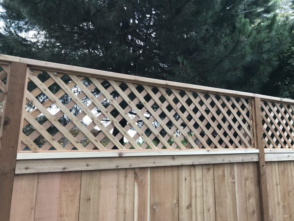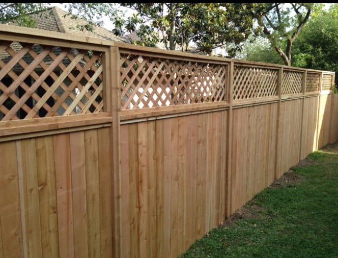 The lattice estate has cedar lattice on the top part of the fence. This allows the sun to shine through to your yard and makes it feel less boxed in. With this style, you can go as high as 8 ft.
