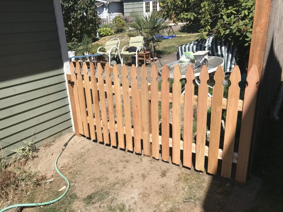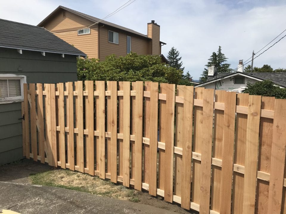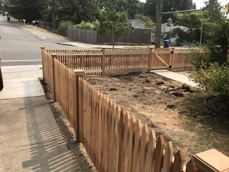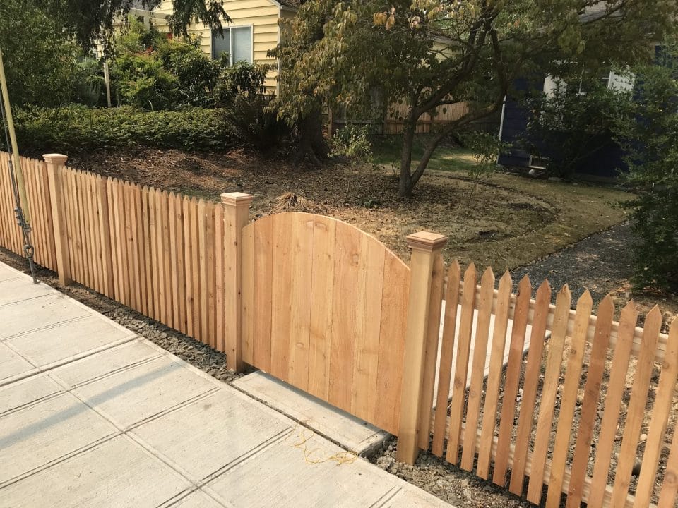 The picket fence is a classic timeless fence great for the front yard. We can do the standard pickets or cut custom pickets to match your taste.